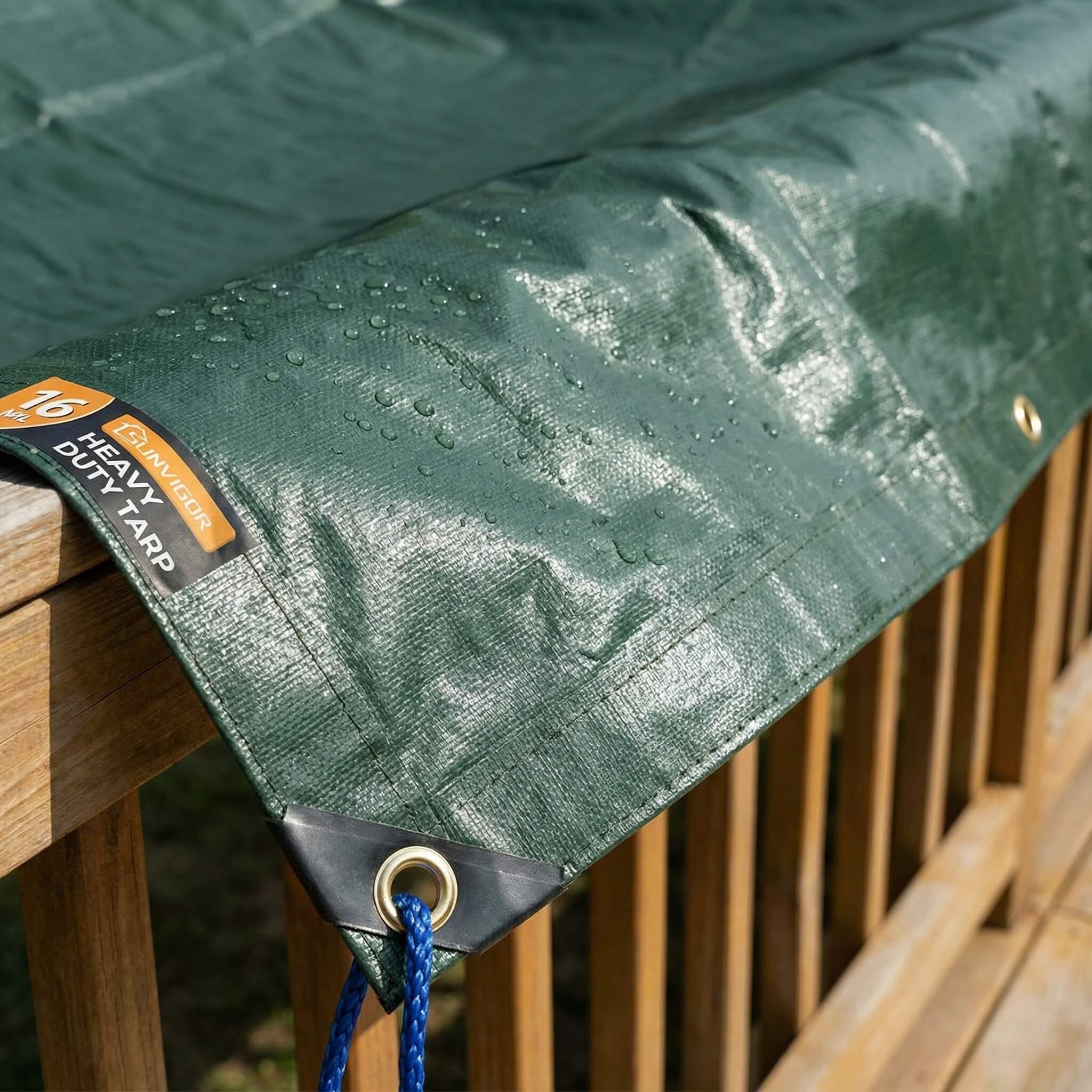 This tarp is designed to be water-resistant and suitable for outdoor protection. It helps block rain effectively, but performance may vary under extreme conditions.
