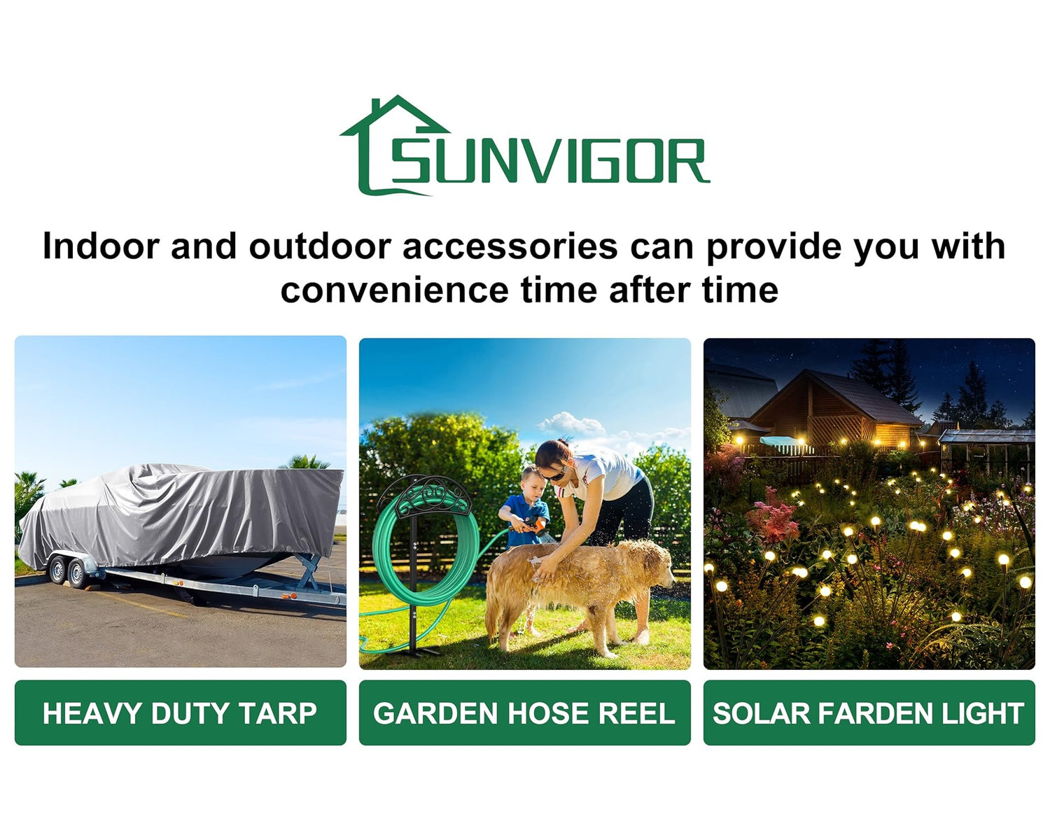 At SUNVIGOR, we are dedicated to creating durable, practical, and beautifully designed accessories that enhance everyday life—indoors and outdoors. From heavy-duty tarps and garden hose reels to solar garden lights and seasonal holiday decorations, our mission is to provide dependable products that help you protect, organize, and brighten your home year-round.
