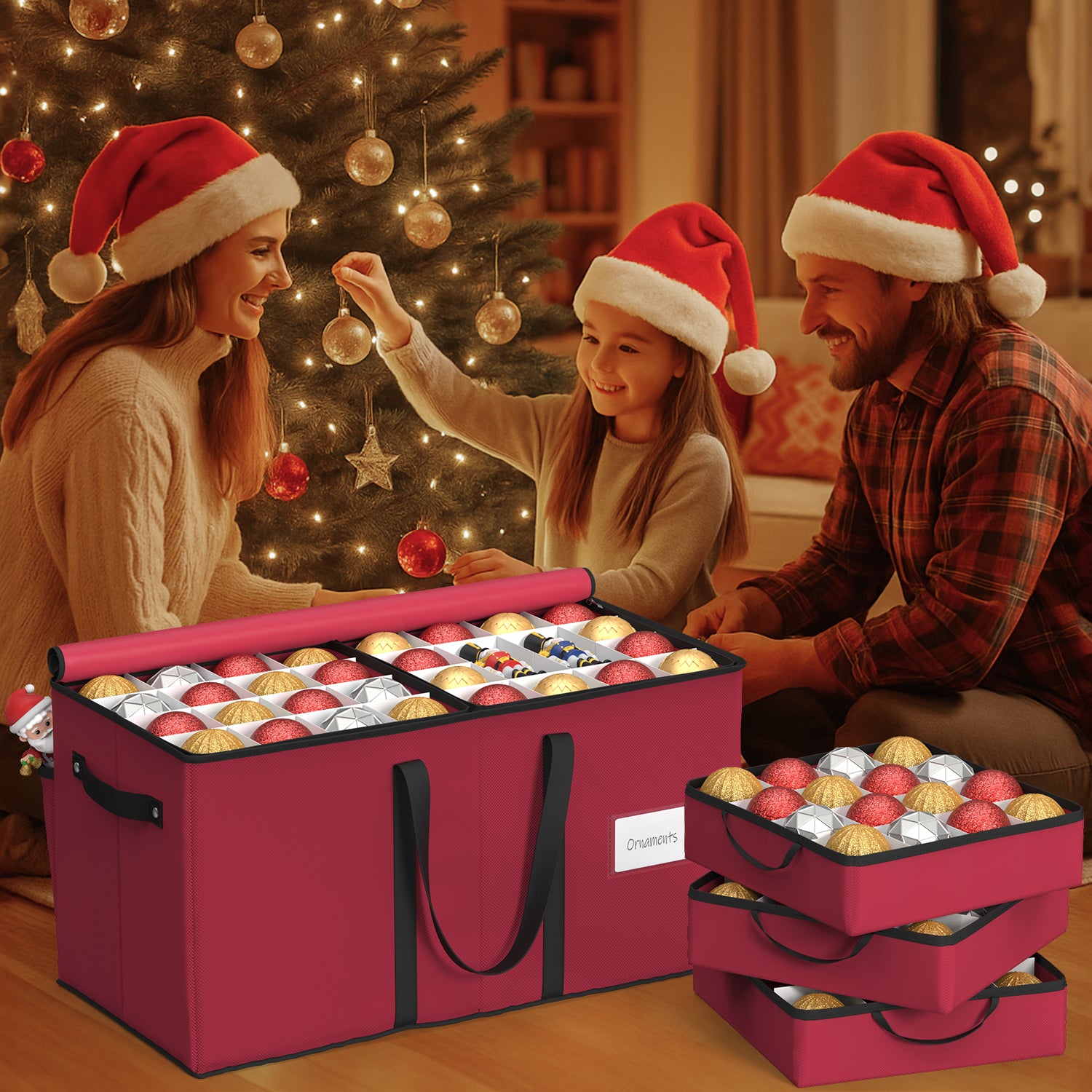 Christmas Ornament Storage Box with 8 Trays(Rose Red)