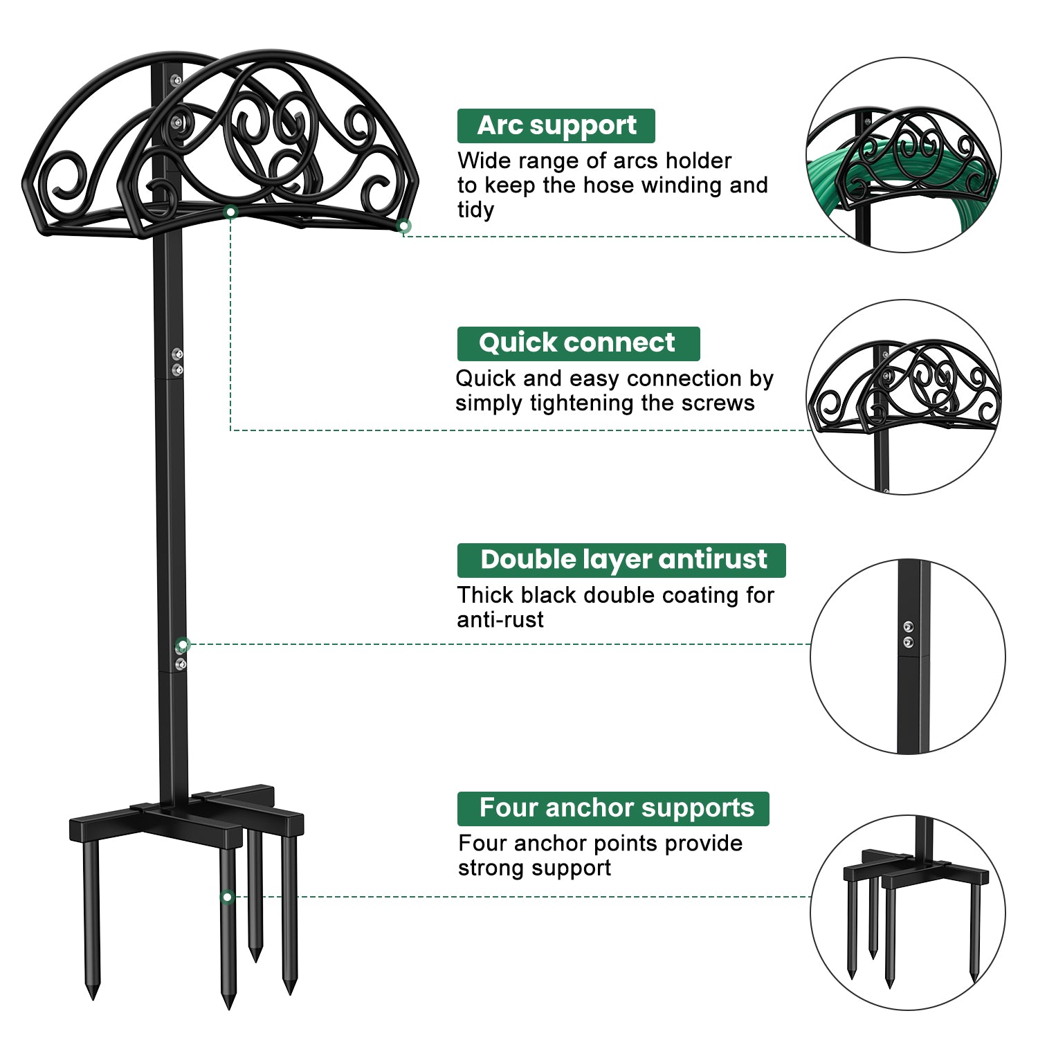 - Product Upgraded 4 Anchors: The base of the garden hose holder has been upgraded to 4 Spikes, which are stronger and more stable than 3 and do not bend or break. Compared to the water hose holder with only three anchors,It provides more support and easily holds 150 feet of hose